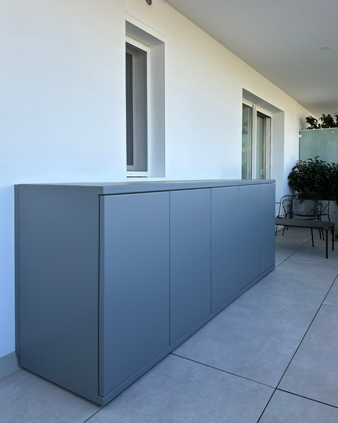 I nostri armadi su misura in alluminio da esterno sono davvero strategici: sempre utili e pronti ad aiutarti per riordinare la terrazza o il balcone.