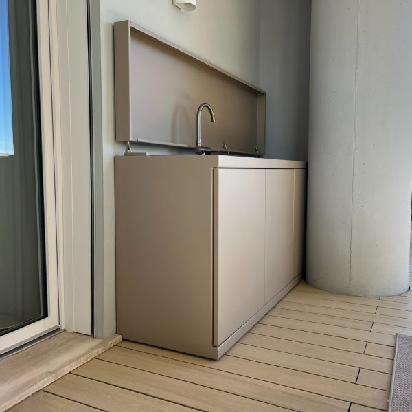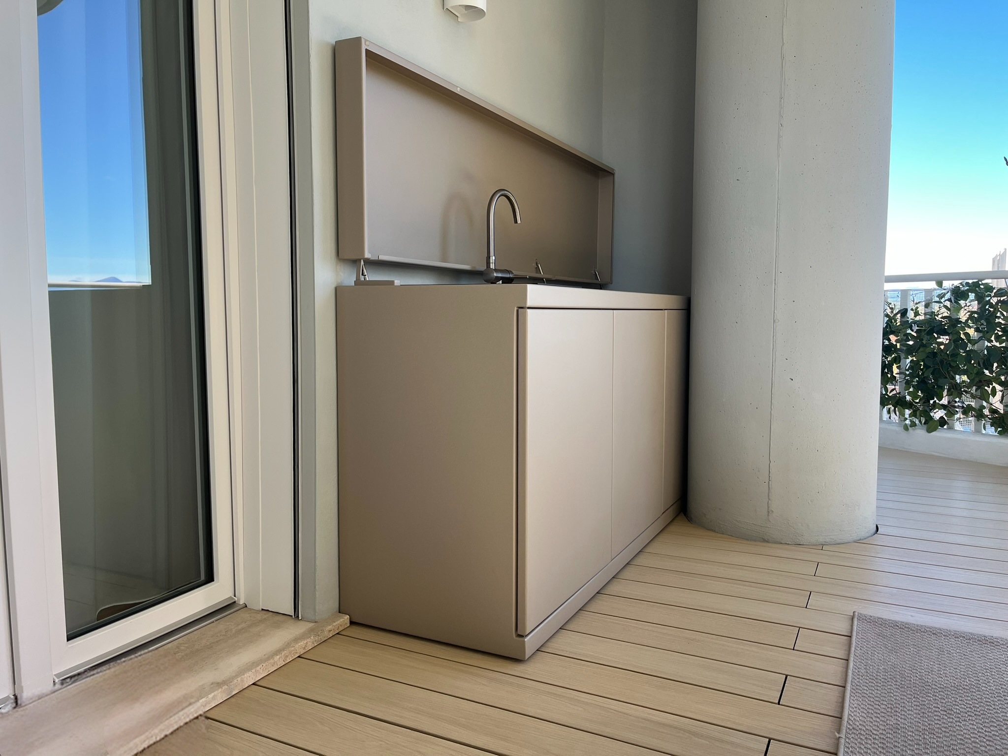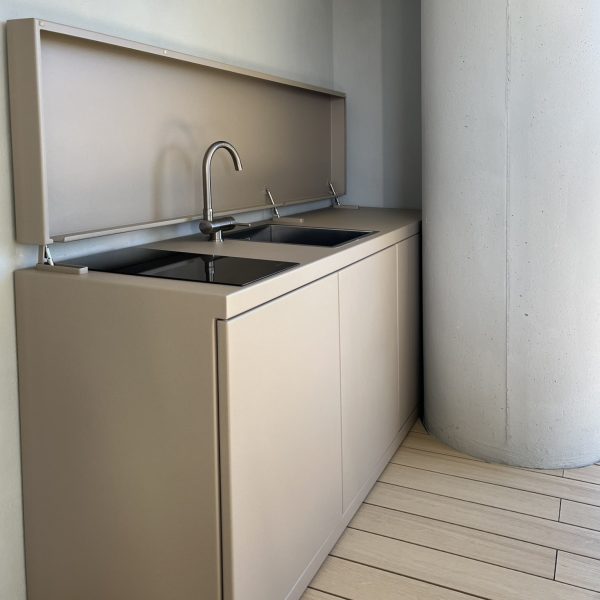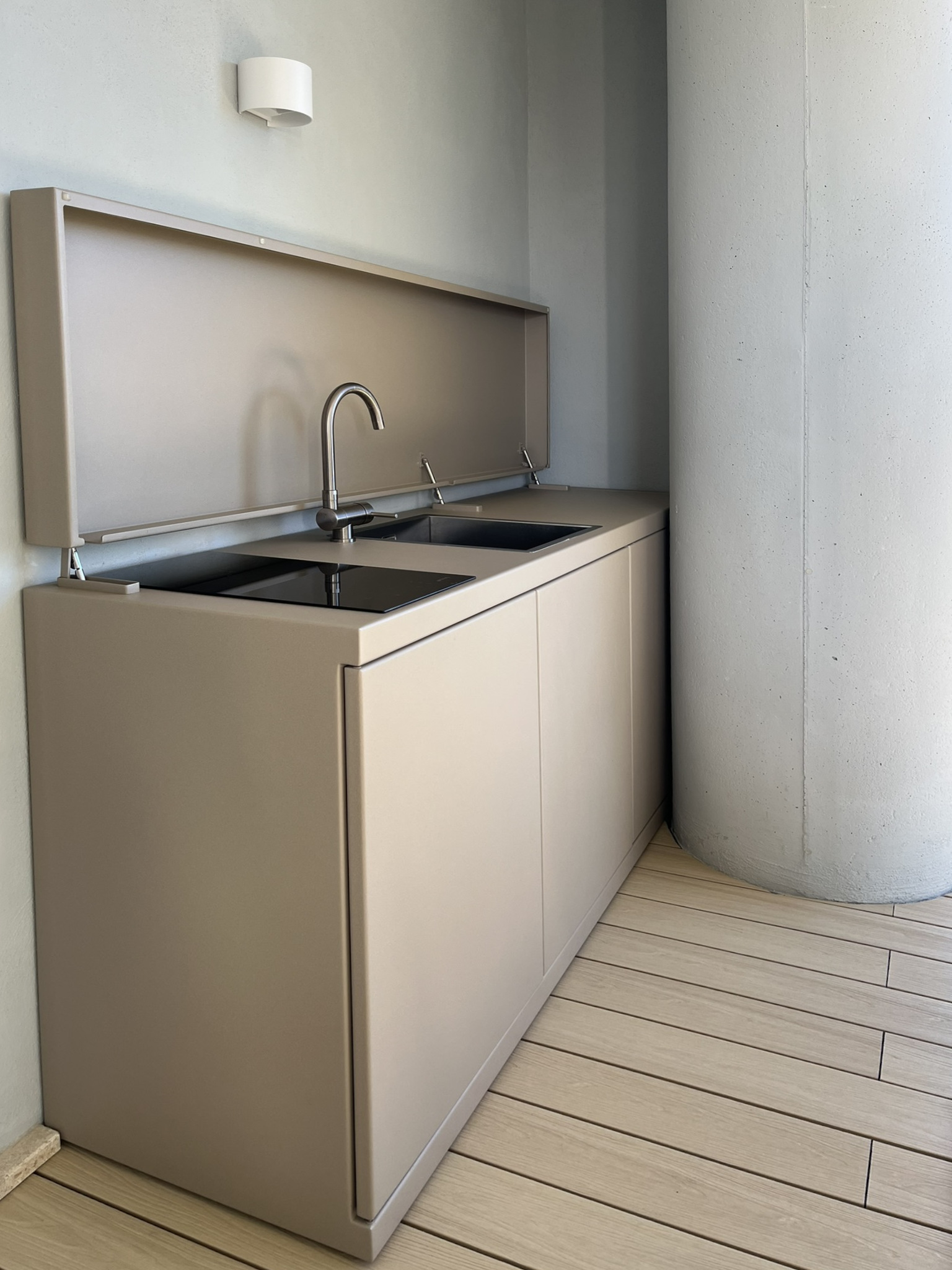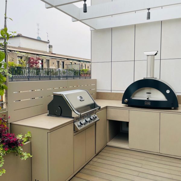 Completamente personalizzabili, puoi ricreare il tuo angolo cottura dotando il mobile cucina anche con un barbecue. Perfetto da usare in compagnia di amici o anche soli, sarà la chicca della tua terrazza. La caratteristica di questo arredo da esterno è proprio quello di essere interamente creato su misura tenendo conto degli spazi disponibili e dello stile che vuoi avere. Inoltre puoi scegliere tra tantissime colorazioni RAL che daranno un carattere davvero esclusivo alla tua cucina.