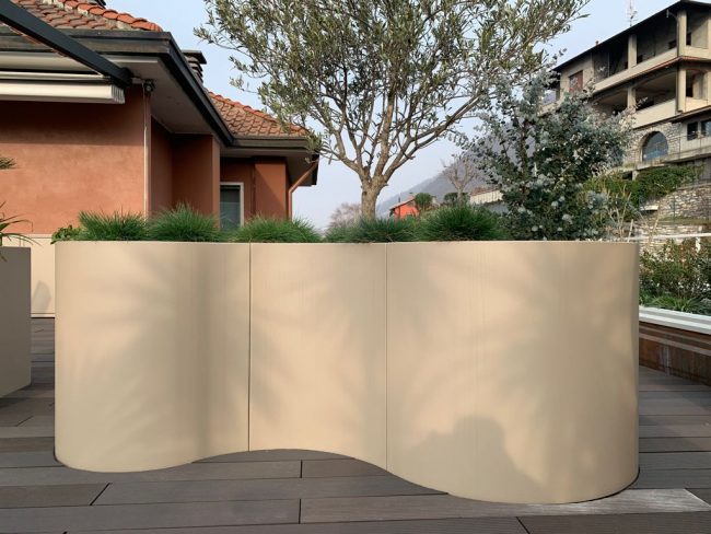 Il tuo angolo relax con fioriere sagomate interamente in alluminio, realizzate su misura e del colore che preferisci.