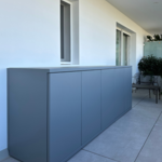 Realizziamo armadi in alluminio per esterno su misura. Con possibilità di avere vani dedicati per nascondere impianti o spazi per lo stoccaggio dei rifiuti domestici