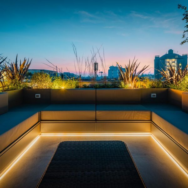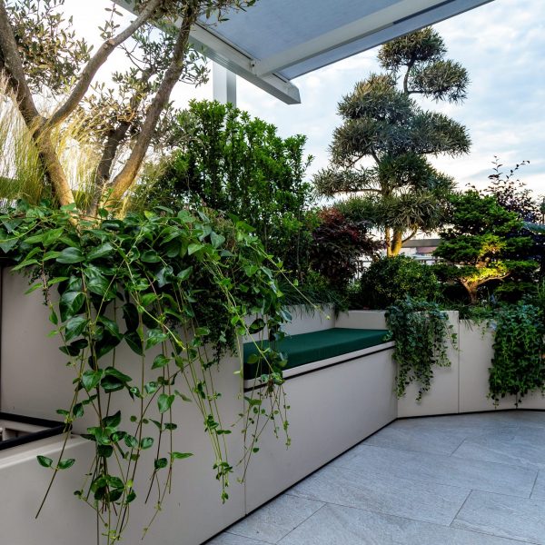 Amiamo collocare le panche all’interno di progetti di terrazzi o verande per rendere l’outdoor più confortevole ed accogliente. Il gioco tra diverse altezze e forme geometriche che crea la presenza di fioriere alternate a panche, è molto attraente.