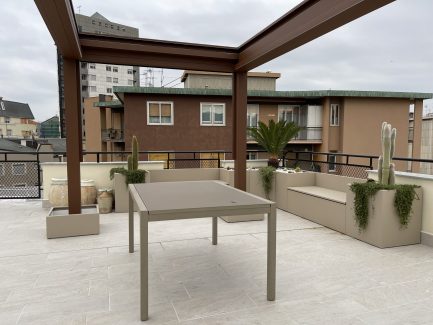 From the 𝗰𝗼𝗺𝗽𝗼𝘀𝗶𝘇𝗶𝗼𝗻𝗲 of square and rectangular planters that have been strategicly positioned to the corner together with the container benches, to the cover with RGB lights to cover the chimney, nothing was left to chance.